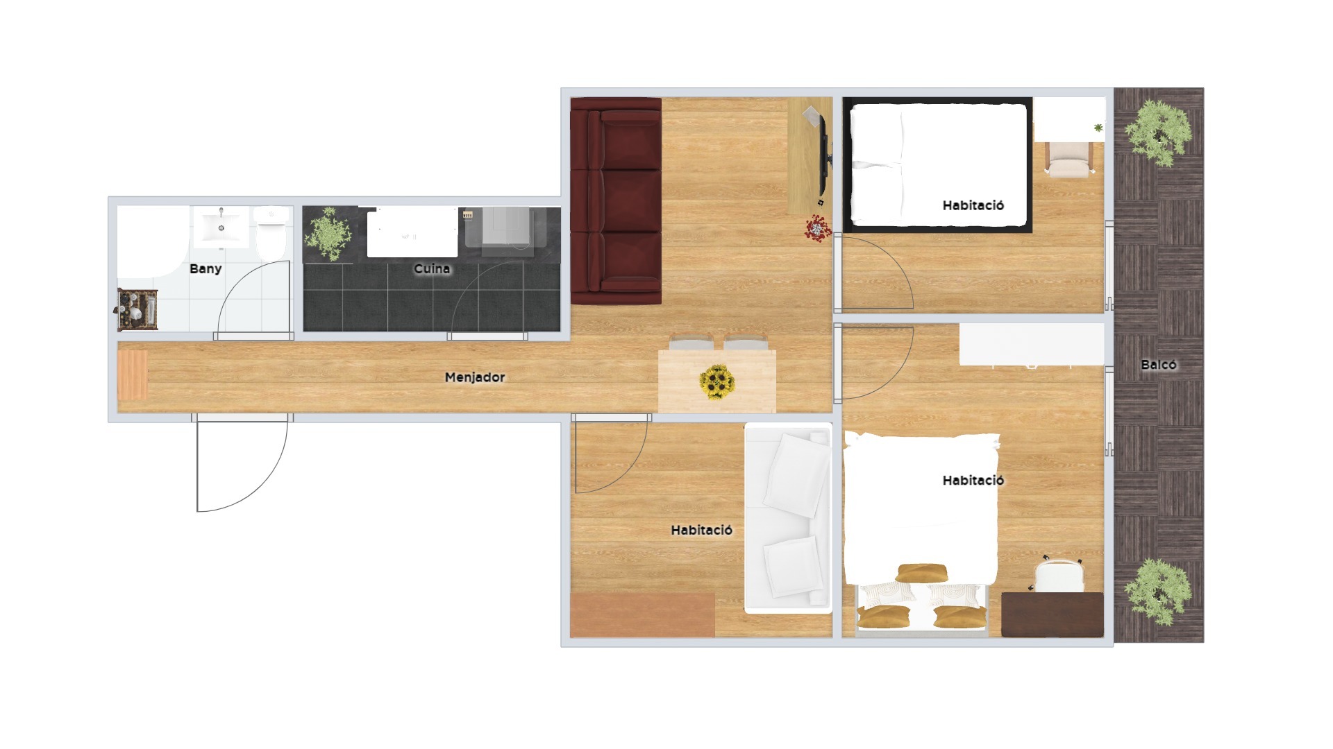 L’habitatge compta amb 3 dormitoris amplis -2 dobles i 1 individual- i 1 bany complet de tres peces amb plat de dutxa, oferint una distribució funcional i còmoda. Com que es tracta d’una planta alta i compta amb orientació est, gaudeix d’una agradable entrada de llum natural.